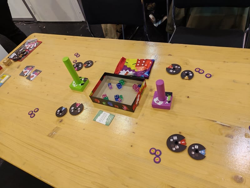 Il s’agit d’un petit jeu de décompte malin, à jouer de préférence à beaucoup. Sur le salon la personne qui nous l’a expliqué a oublié des petits détails de scoring ce qui a pu altérer notre jugement. Un jeu d’ambiance et d’observation au système intéressant et original.