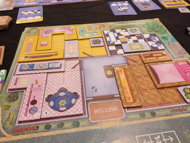 Pour compléter le tout, il y a un système d’objectif à remplir, des zones à compléter au risque de perdre des points. C’est simple, familial, court. Les règles sont vite assimilées et le jeu reste agréable à jouer. Il y a clairement un plus pour les personnes adeptes de décoration et de Tetris (même si cela reste léger).