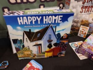 Vous avez toujours rêver d’aller chez Ikea avec un budget illimité ? Bienvenu chez Happy Home. Le principe est simple : vous allez décorer au mieux votre maison en sélectionnant des meubles, tapis, objets, plantes disponibles sur un plateau central. Ici pas de question d’argent tout est gratuit. La seule question à prendre en compte c’est le placement de votre pion dans la file de jeu et la taille que prendra la tuile. Un peu à la manière d’un Tokaido, le dernier joueur sur la piste joue en premier.