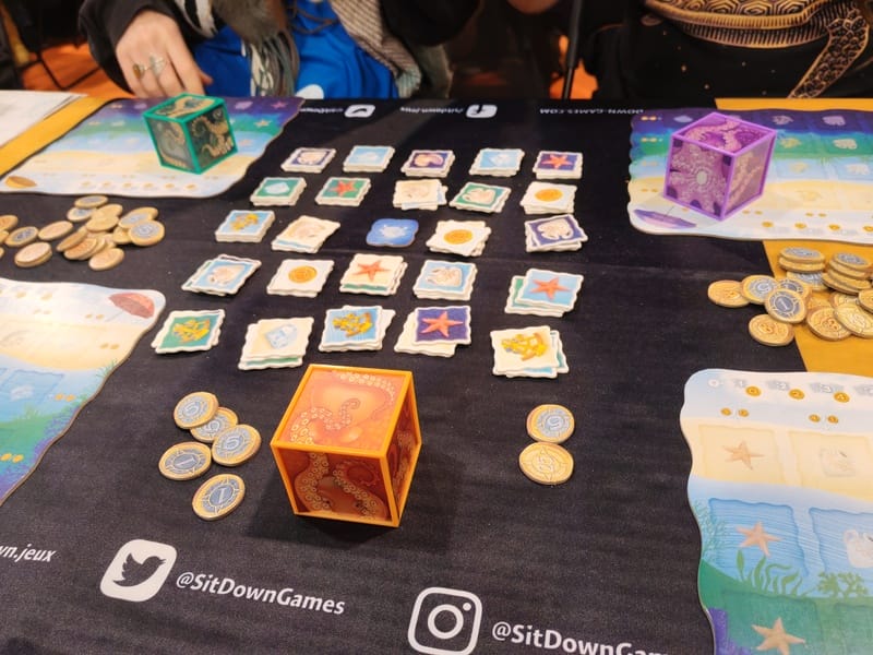 Un jeu familial qui vous plonge au fond de l’océan pour incarner un Octopus à la recherche de trésor. Niveau gameplay vous avez un plateau comportant de nombreuses tuiles trésors de couleurs différentes. À l’aide d’un cube magnétique vous allez vous déplacer pour ramasser le plus de tuiles et les ajouter sur votre plateau personnel. Vous marquerez des points en fonction des majorités sur vos lignes et colonnes.