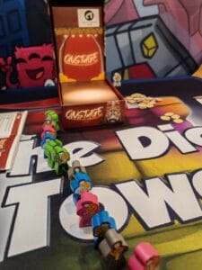 Le jeu est sorti chez Mood Publishing à qui l’on doit l’excellent Deep Rock Galactic, c’est un King Of Tokyo like où l’affrontement est le cœur du jeu. De la même manière, vous allez faire un lancé de dés pour réaliser des combo afin de frapper l’adversaire ou de lui voler des points de victoire, et le ressenti est très proche.