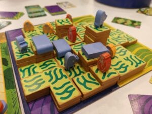 Mais attention les autres joueurs peuvent venir briser vos zones voire même vous les voler en étant majoritaires. Il est aussi possible à partir d’un certain niveau de jouer des rivières qui vont donneront de véritables bonus. Une variante avec des cartes un peu plus agressives est même disponible.