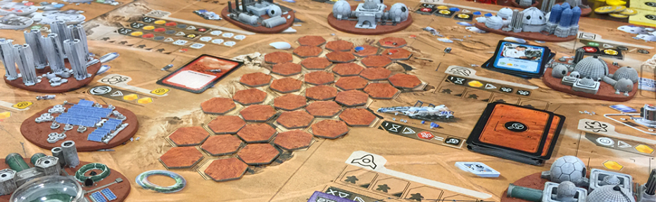 Martians : a story of civilisation. Trèèèèèès attendu, ce Red Imp. Il faut dire que Mars a le vent en poupe (après les vikings de 2015…) et que la versatilité et thématisation du jeu semblent s’allier pour créer une expérience forte. Solo, coop, semi coop ou compétitif, on a le choix !