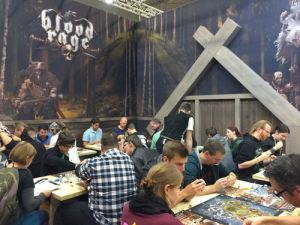 Puis nous sommes retournés dans le hall 1 afin de nous faire expliquer In the Name of Odin par notre ami Marc-Etienne qui parle un français parfait et avec une ferveur communicatrice ! Nous avions peur par rapport aux figurines, mais elles s’avèrent n’être que des ressources au final et ça nous va très bien, tout en collant au thème.