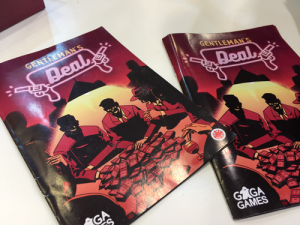 Du même éditeur – Gaga Games, puisqu’il faut bien le citer – nous avons vu Gentlemen’s Deal. Ici, il s’agira de partager des biens mal acquis, mais personne à part le donneur ne sait qu’est-ce qui doit être distribué. Bien entendu, il faut négocier, voter et dire si l’on est d’accord avec le partage effectué. Dans l’équation, des personnages sont à distribuer, avec chacun leur pouvoir spécial à appliquer les tours suivants. Si vous n’avez rien, vous ne serez pas lésé pour autant : on appellera les gangs à notre rescousse pour négocier de façon un peu plus agressive… Du blabla bien violent au menu, j’imagine.