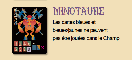 C’est ainsi que l’on sauve sa peau et gagnera de nouvelles cartes. Assurez-vous de sélectionner judicieusement votre jeu de cartes, non seulement en fonction des objectifs, mais aussi en tenant compte des contraintes imposées par chaque Éternel une fois éveillé. Par exemple, un joueur vient tout juste de ranimer le Minotaure, qui est assez irritable : tant qu’il ne sera pas calmé, il interdira l’utilisation de toutes les cartes bleues. Autant dire que vous allez mettre des petits cailloux dans les chaussures de vos amis sans le faire exprès.