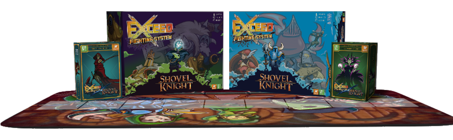 On avait déjà vu une petite incursion de Shovel Knight avec Exceed : Shovel Knight Solo Fighter l’an dernier, histoire de tâter le terrain. Les nouveautés sont quant à elle déjà en préco et comprennent une Hope Box et une Shadow Box des produits autonomes qui contiennent 4 personnages et tout le nécessaire pour jouer (pour environ 30$ chaque), et deux petites boîtes (à 12$) qui proposent un combattant seul (The Enchantress et Specter Knight). La sortie officielle de tout ce joli monde est fixé à décembre prochain.