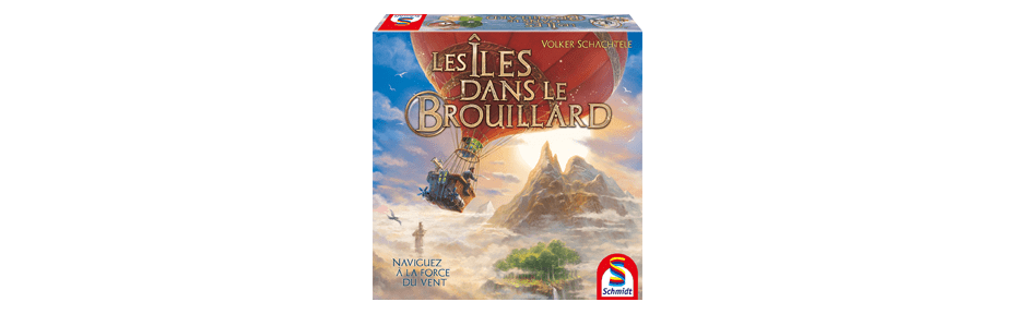 Voici donc venir Les Îles dans le brouillard de Volker Schächtele (le monsieur de Queen’s Architect) chez Schmidt (itw Schmidt Ludovox par ici). Aux pinceaux, on retrouve Michael Menzel qui nous dépeint « un jeu de découverte venteux » pour citer la règle de ce Die Inseln im Nebel.