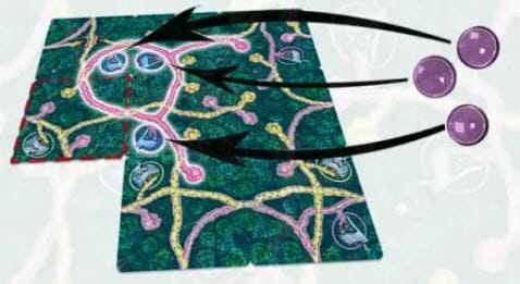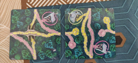 À partir d’une première tuile de départ, chaque joueur va alternativement poser une tuile chemin. Chaque joueur dispose d’une main de deux tuiles qu’il complètera à la fin de son tour.