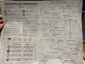 Après il est évident que Flamme la renarde est taillée pour le feu du corps à corps, la grenouille s’escrime plutôt à distance (et son agilité lui permet de bondir et de se cacher), le Golem est une armoire à glace qui peut encaisser les coups (tank) mais aussi très utile dans les déplacements car il peut porter les autres, et Étincelle est une magicienne qui-sait-tout (beaucoup en Perspicacité), elle sait même voler (et lire !). C’est en faisant progresser votre histoire personnelle que vous gagnerez aussi de multiples petits bonus (en jouant les cartes bribes d’histoire et relations). On cerne ainsi de mieux en mieux les personnalités et leurs relations avec l’avancement des sessions.
