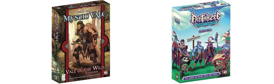 Fantahzee: Rogue’s Gallery la première extension pour Fantahzee de Ryan Miller, et Vale of the Wild la seconde extension pour Mystic Vale de John D. Clair, sont dans les tuyaux avrillés de l’éditeur AEG, qu’on se le dise, toutes leurs cartes n’ont pas été abattues encore !