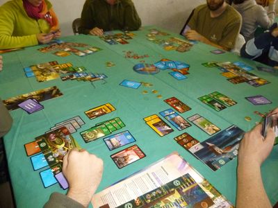 Il s’agit d’un jeu d’optimisation de Stefen Feld avec des dés et dans lequel on développe son domaine en y apposant des tuiles acquises sur les différents marchés du plateau commun. Le jeu tourne très bien à 2 joueurs.