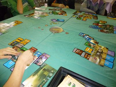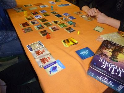 Je n’ai pas pu participer à tous les évènements, loin de là, mais vous propose tout de même un compte-rendu des jeux auxquels j’ai eu la chance de jouer lors de la soirée du mardi soir à JES et le samedi à la Halle Clemenceau. Entre autres, Inis, Yunnan, St Pétersbourg, Descendance…