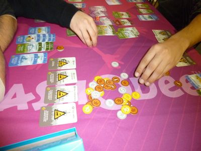 Mathias nous explique les règles et nous voilà lancés dans une partie à 3 joueurs avec France et Chris.