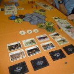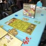 Le début de soirée fait place à de nombreuses parties entamées un peu partout sur les stands et je décide de faire découvrir Les Châteaux de Bourgogne à Géraldine tout juste rencontrée en attente de partie de jeu sur le stand de JES.