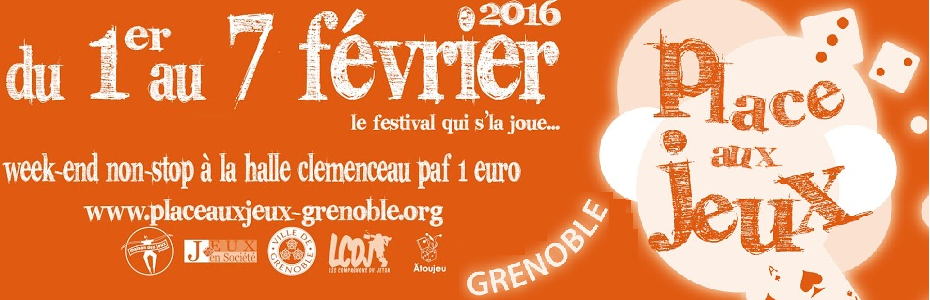 Du 1er au 7 février 2016, Place aux jeux revient installer ses plateaux ! Toujours dans le même esprit de partage et de bonne humeur, toujours avec le même appétit pour les découvertes ludiques et le dépaysement culturel, les quatre associations organisatrices du festival (La Maison des Jeux , Jeux En société, Les compagnons du jeton et Atoujeu) proposent une semaine nomade de soirées jeux, à débusquer partout dans Grenoble et alentours.