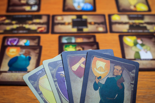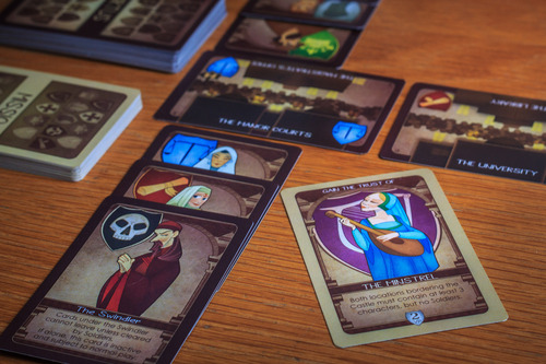 Vous jouez des personnages dans différents lieux, histoire d’atteindre les conditions nécessaires à vos objectifs secrets. Chaque personnage a son petit carafon, son petit pouvoir à lui : le boucher intimide les autres, l’étudiant gagne plus de cartes, le soldat empêche les paysans de flâner trop longtemps, etc.