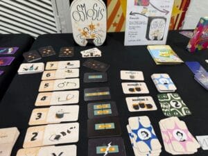 La comparaison avec Flip 7 est évidente (jeu de cartes à même format, stop ou encore au cœur de l’expérience, deux chiffres identiques signifient que l’on saute), mais on a envie de dire que l’on s’arrête là : ici, on joue plus au petit bonheur la chance en espérant ne pas sauter. Parfois, sauter vous sera même avantageux… La séquence de jeu s’avère légèrement complexe pour la durée de jeu, les tours sont un peu répétitifs mais au moins on a un arc de progression. Pas hyper séduit par celui-ci, qui peine à mettre l’ambiance et qui procure surtout du feedback négatif (en sautant, en mettant des cartes en malus dans sa défausse).