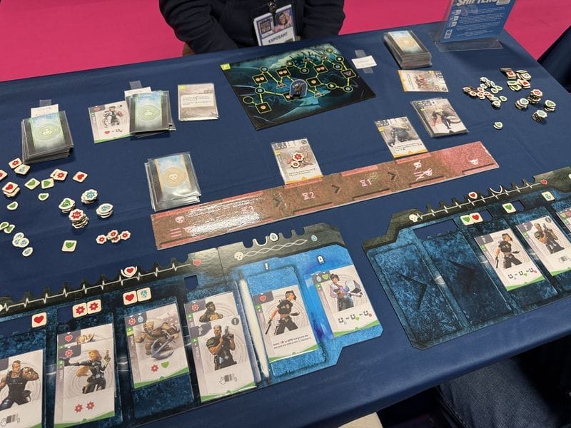 Les deux premiers scénarios de la campagne étaient testables à l’occasion du FIJ (le monde Aquatique et le monde « Rats »), on a bien hâte de découvrir les autres univers et leurs particularités mécaniques (Union Soviétique, Antiquité, Moyen-Age…). Nul doute que Shifters devrait séduire les amateurs de deck-building, de planif serrée et de coopération (on ne peut pas prendre les dégâts pour l’autre mais il faut bien se mettre d’accord sur qui fait quoi et miser sur nos points forts pour l’emporter). Il y a deux decks de départ asymétriques pour la boite de base qui sortira en boutique. À noter que le jeu propose deux autres modes de difficulté en plus du mode normal, ce qui a du sens car Shifters a du goût surtout quand on est sur le fil. On gardera un œil sur la campagne à venir en avril. En attendant, sachez qu’on vous en causait aussi en vidéo dans le premier debrief.