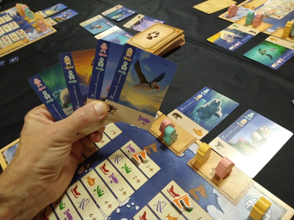 Enfilez les peaux de phoques et affûtez les traîneaux, Borealis nous envoie en vadrouille sur la banquise. Les neurones ne restent pas froids longtemps s’agissant d’un jeu d’optimisation conclu par une mini-salade de points à 4 ingrédients croisés : collections d’animaux polaires, avancées sur des pistes d’exploration, objectifs court terme et critères de fin de partie.