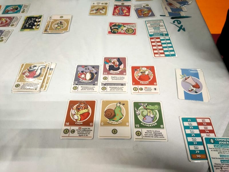 Les toons sont de mignons animaux au look… cartoonesque. Chacun n’existe qu’en deux ou trois exemplaires, vous aurez donc des choix très différents d’une partie à l’autre. Dès qu’un joueur atteint 30 points de prestige, la fin de partie est déclenchée. On joue une dernière manche et c’est la joueuse qui a le plus de prestige lors de cette manche qui remporte la partie (et ça n’est pas forcément celle qui avait déclenché la fin du jeu).