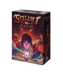 Geon-il, l’auteur de Jekyll Vs Hyde, revient avec un jeu de plis asymétrique pour 2 joueurs. Ce nouveau titre est plus épuré que le précédent mais tout aussi subtil. Faust a deux manches pour corrompre deux couleurs parmi quatre, autrement c’est Mephisto qui remporte la partie. Corrompre une couleur signifie que toutes les cartes de cette couleur ont été prises par le même joueur. Le nombre de cartes diffère selon les couleurs. (4 pour rouge contre 7 pour vert). On retrouve le système de hiérarchie des couleurs qui s’établit progressivement au fur et à mesure où les couleurs sont jouées pour la première fois, qui était déjà présent dans Jekyll Vs Hyde. Deux fois par manche il est possible de forcer son adversaire à jouer sa plus forte ou plus faible carte devant nous (comme si c’était nous qui l’avions jouée). Ce coup forcé, quand il est joué au bon moment, peut vraiment être déterminant.