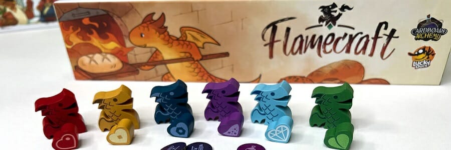 Avec ses dehors mimis, ses couleurs chatoyantes, ses dragonets souriants aux noms amusants, travaillant en boulangerie ou faisant cuire des brochettes, ses textes bienveillants, on aurait vite fait de croire que Flamecraft est destiné aux minots. Ce qui déroute les joueurs à la première partie, trop confiants. À part jouer à la marchande avec les meeples, les bambins risquent fort de s’ennuyer. Ce jeu est un jeu de gestion et d’optimisation au sein d’échoppes situées le long d’une grande rue. Une sorte de Iki chez les dragons ? N’exagérons pas.