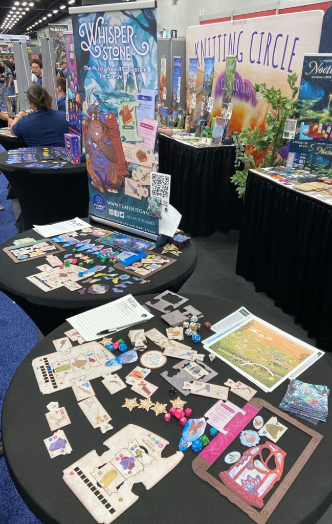 Whisperstone est un jeu de rôle qui utilise un nouveau système de pièces de puzzle emboîtables, nommé « Heirloom ». Ce système « offre une expérience de jeu de rôle complète avec une présentation de type jeu de société. Les composants tactiles innovants codifient les règles en couleurs et en formes, créant ainsi des histoires et des rencontres – sans précédent dans les jeux de rôle. Les pièces tactiles permettent également de simplifier les règles, facilitant ainsi le déroulement d’une session afin que les aventuriers apprennent à jouer en quelques minutes seulement. Les statistiques, l’équipement, les tactiques et bien d’autres éléments rendent l’expérience physique d’une manière qui captive les joueurs de tout âge et clarifie leurs choix. » Expérience un brin hybride donc entre j2s et jdr, Whisperstone promet une prise en main rapide, avec des sessions préparables en moins de trente minutes. Le système Heirloom permet également une personnalisation poussée des personnages grâce à des centaines d’objets et d’éléments combinables.