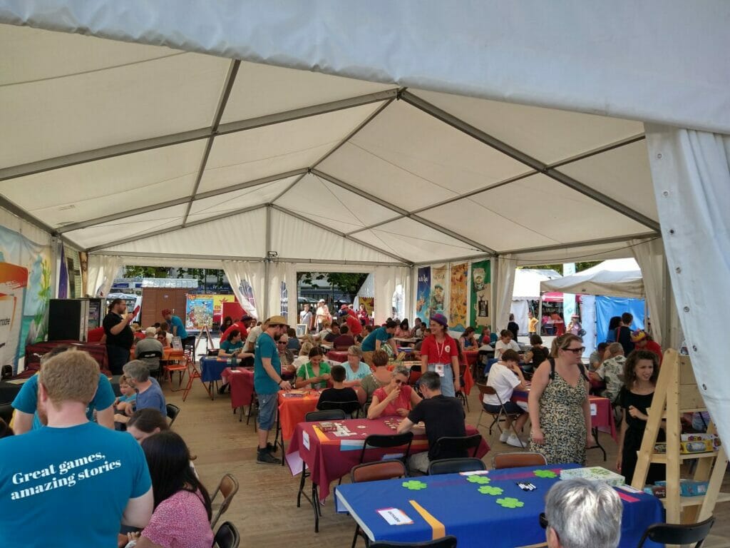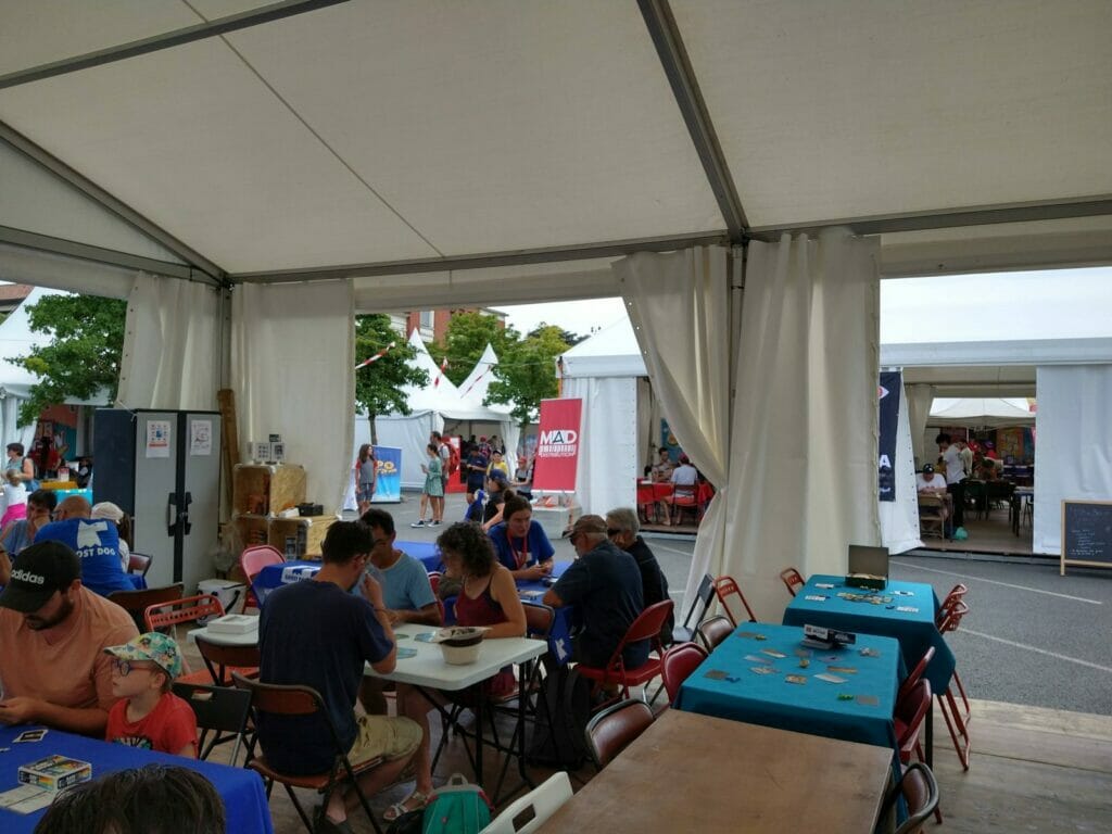 De retour donc, les rues « en jeux » où déambulent pêle-mêle familles, gamers de tout âge, colonies de vacances, habitants convertis ou simples curieux. Outre leurs multiples activités en extérieur sur le pouce, ces rues étaient comme à l’accoutumée ponctuées de « lieux éphémères », des locaux en dur aménagés le temps du festival par certains éditeurs ou associations du monde ludique.