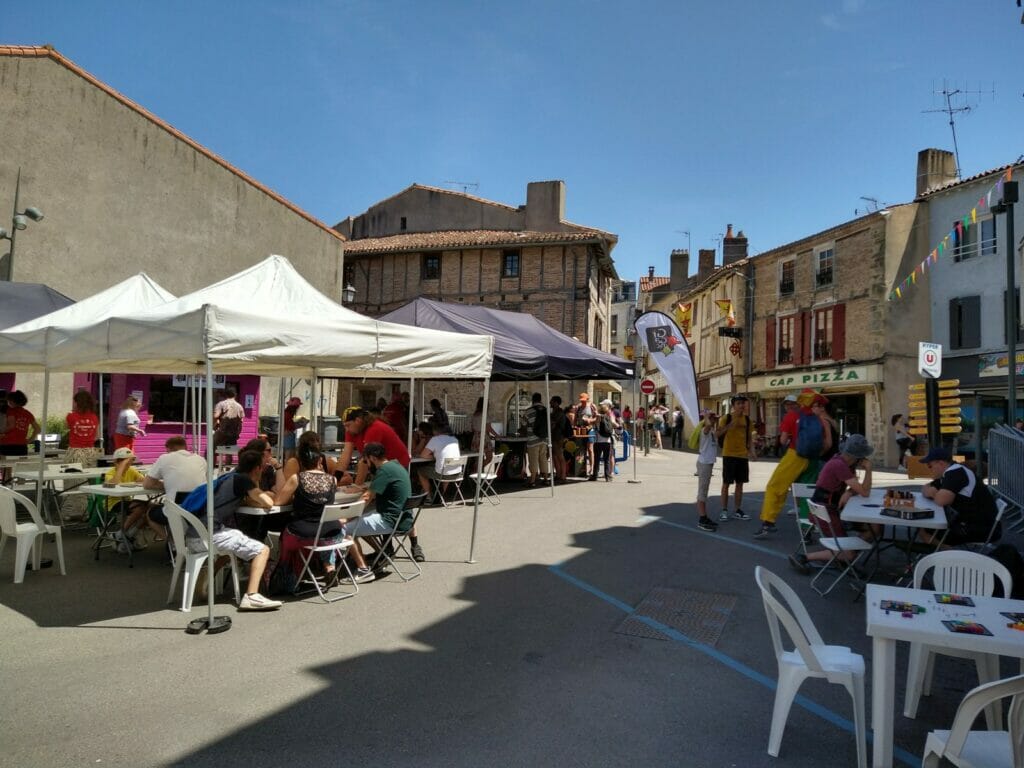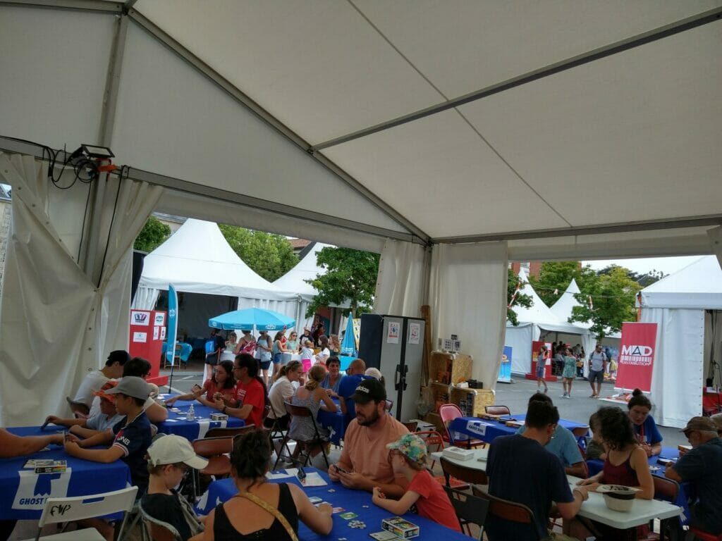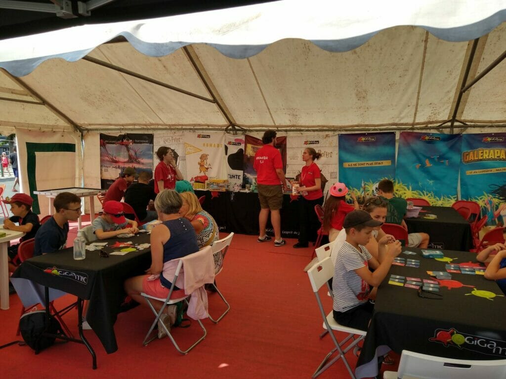De retour donc, les rues « en jeux » où déambulent pêle-mêle familles, gamers de tout âge, colonies de vacances, habitants convertis ou simples curieux. Outre leurs multiples activités en extérieur sur le pouce, ces rues étaient comme à l’accoutumée ponctuées de « lieux éphémères », des locaux en dur aménagés le temps du festival par certains éditeurs ou associations du monde ludique.