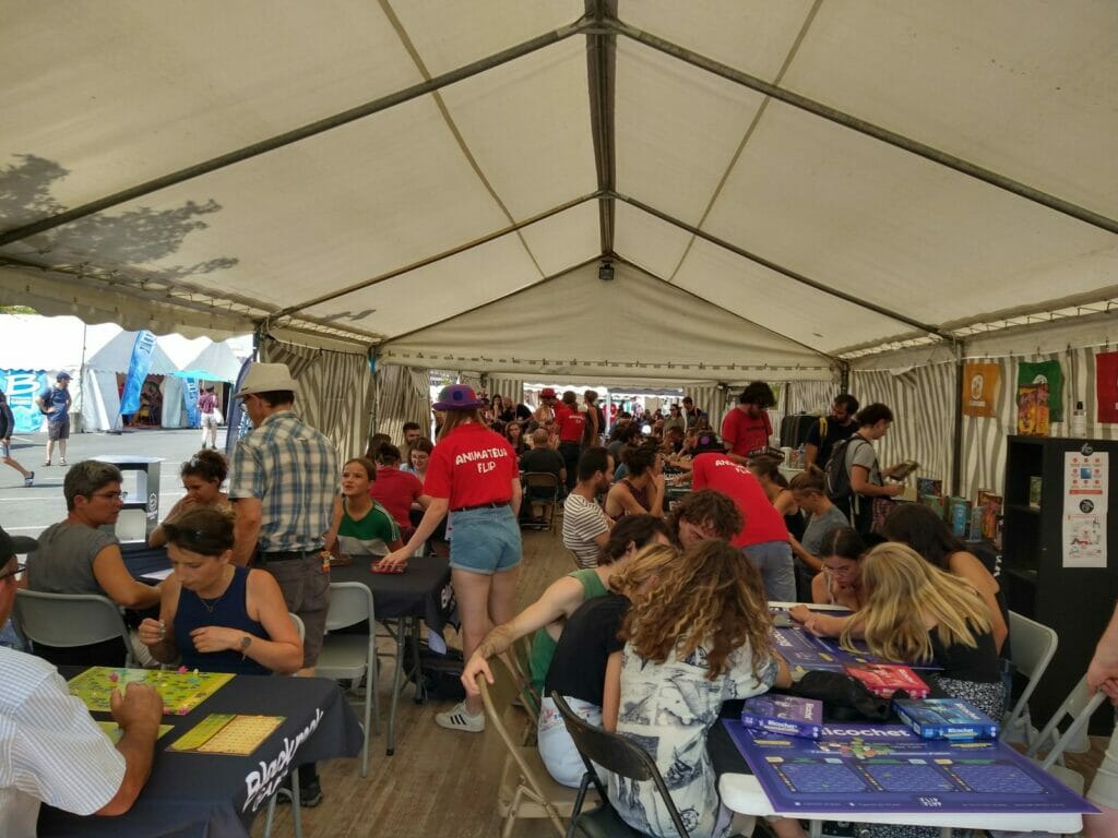 Après ces résultats factuels, enchaînons sur la subjectivité la plus totale. Parce que le FLIP c’est aussi, lorsqu’on le souhaite, du jeu en mode intensif. Le festival est connu pour la grande accessibilité de ses tables, tant les espaces sont nombreux. En dehors de quelques moments un peu plus chargés, il n’a une nouvelle fois pas failli à sa réputation. La disponibilité assez souvent immédiate des animateurs-explicateurs permet d’enchaîner les parties sans lecture de règles. Alors petits, gros, récents ou plus anciens, dans le désordre complet, voici un panel de jeux pratiqués.