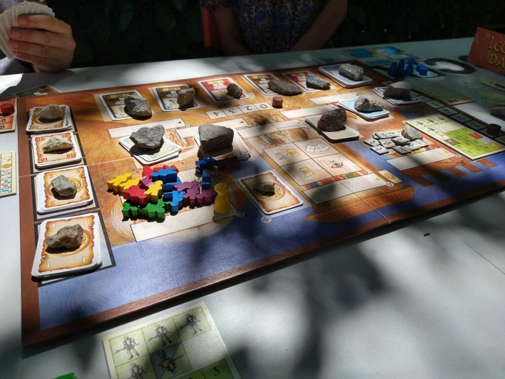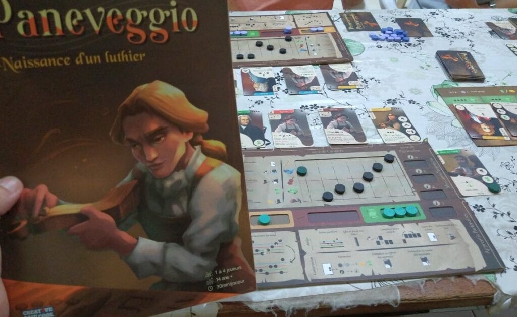 Palto : Toujours fidèle aux festivals, Palto propose une version de salon du jeu de palets (ou de la pétanque) avec des pièces rondes qualitatives en cuir. C’est aussi simple que ça. C’est ergonomique, ça se plaque bien au sol, et ça occupe les enfants un jour de pluie dans le salon ou dans un couloir. Une valeur sûre parmi les jeux classiques, pour ceux qui aiment le genre. | Paneveggio (à paraitre) : Pour son premier jeu édité, Lionel Graveleau attaque avec un titre expert plutôt original. Les decks et plateau pré-construits ne sont pas de trop pour se laisser porter lors des premiers tours. Un des plaisirs vient des savantes manipulations sa séquence d’actions (représentée par une partition) pour coller aux besoins du moment. Difficile en tant que débutant de lever la tête du guidon et d’exploiter les possibilités interactives du jeu. Le thème et le gameplay singulier méritent d’être creusés. | |