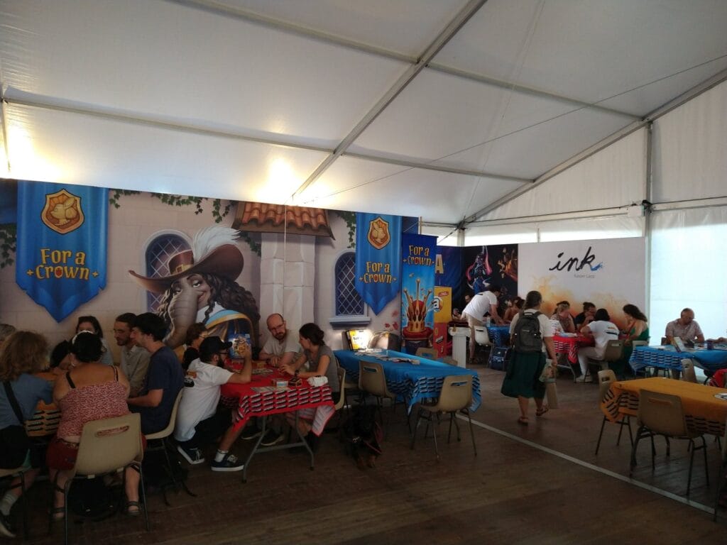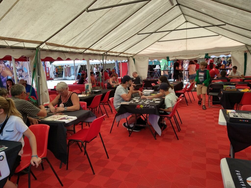 Malgré la présence notable d’un grand nombre de ludistes connaisseurs et autres rôlistes patentés, il faut savoir que le public du FLIP tend majoritairement vers le familial. Attendez-vous à croiser pêle-mêle grands-parents et poussettes, curieux et promeneurs locaux, hordes d’enfants en chasubles et casquettes oranges.