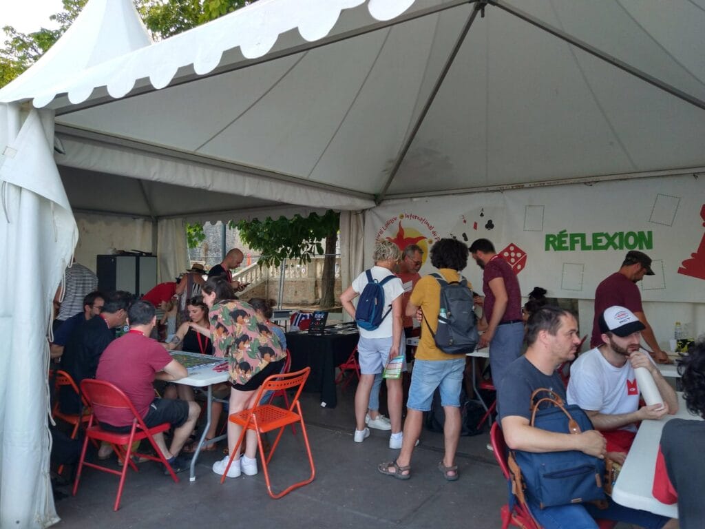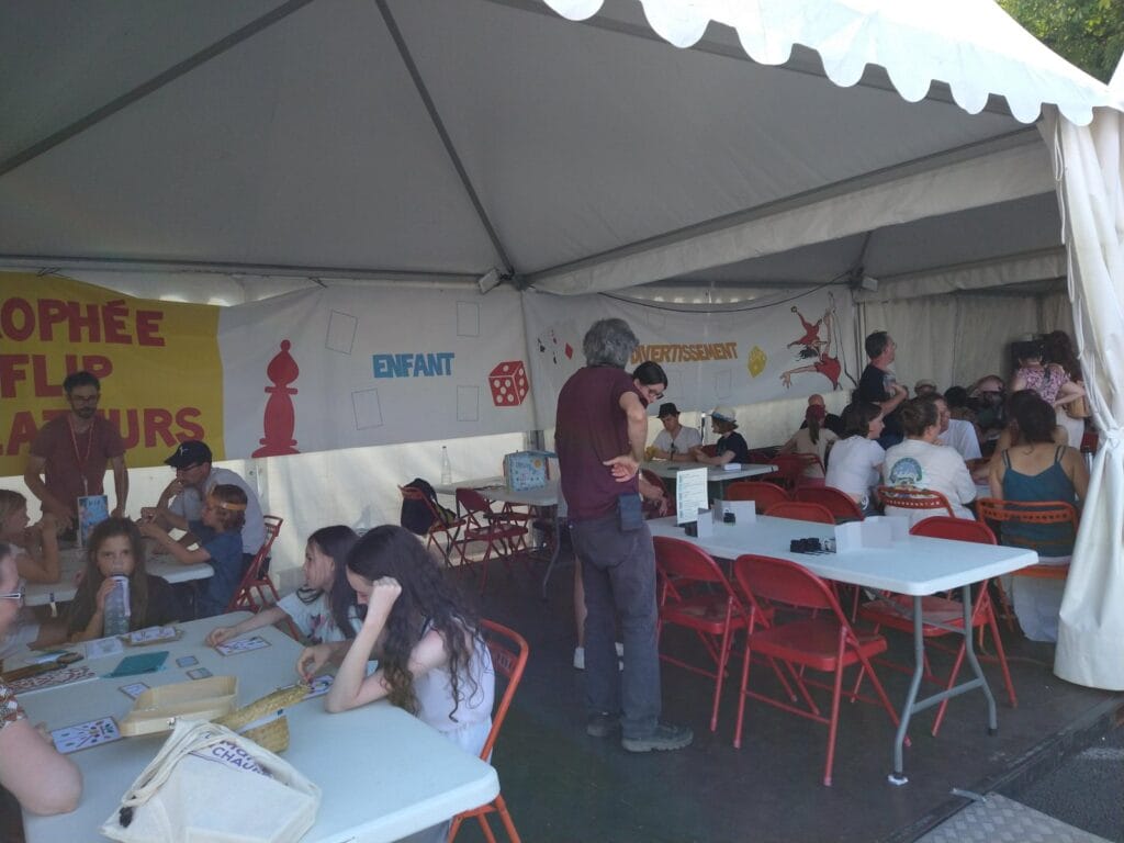 Année après année, le plaisir du FLIP va en croissant (et non pas en chocolatine). Des retrouvailles, mais aussi de nouvelles connaissances qui se font, parmi le public, les auteurs ou les éditeurs. Les animateurs sont toujours prêts à vous faire découvrir un jeu, peu importe s’il s’agit d’une nouveauté ou non. Malgré la fréquentation grandissante, on parvient encore à trouver des places. Je repars avec quelques coups de cœur. Rendez-vous le prochain été, sans faute ! |