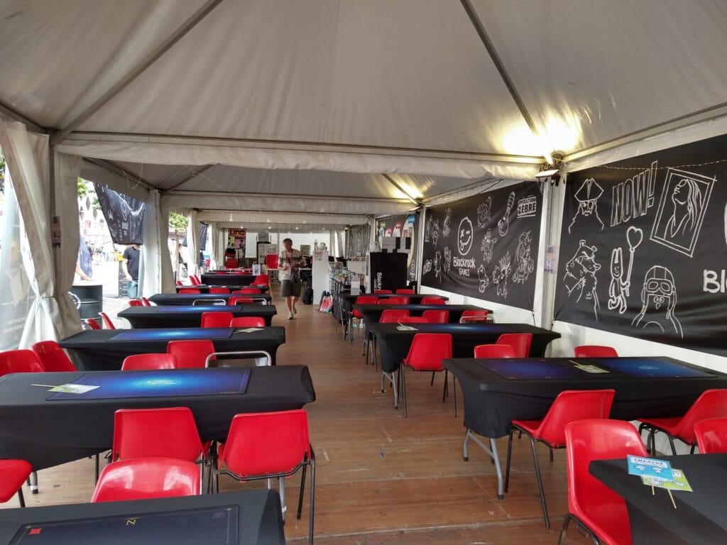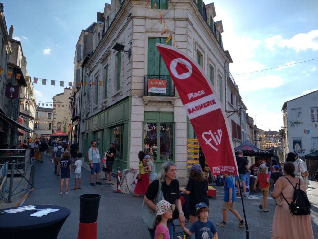 Pour la seconde année consécutive, le rassemblement parthenaisien aura eu la chance de passer entre les gouttes des désagréments climatiques. Comme nous le vantons assidûment sur Ludovox, le FLIP est un évènement unique en son genre, qui suppose de multiples déambulations dans le centre-ville. Les animations, se tenant pour l’essentiel en extérieur, ont ainsi pu bénéficier d’un soleil généreux, certes pesant au plus fort de l’après-midi, mais sans tomber dans les excès caniculaires.