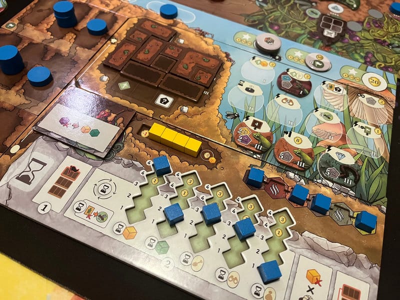 J’apprécie ce système, on peut facilement gagner des cartes, et dans un jeu de tableau de cartes, c’est la vie. D’autant plus qu’on peut en sacrifier une à chaque incubation pour monter sur une piste qui donne un bonus, des points de victoire ou un ordre de tour, selon les situations.