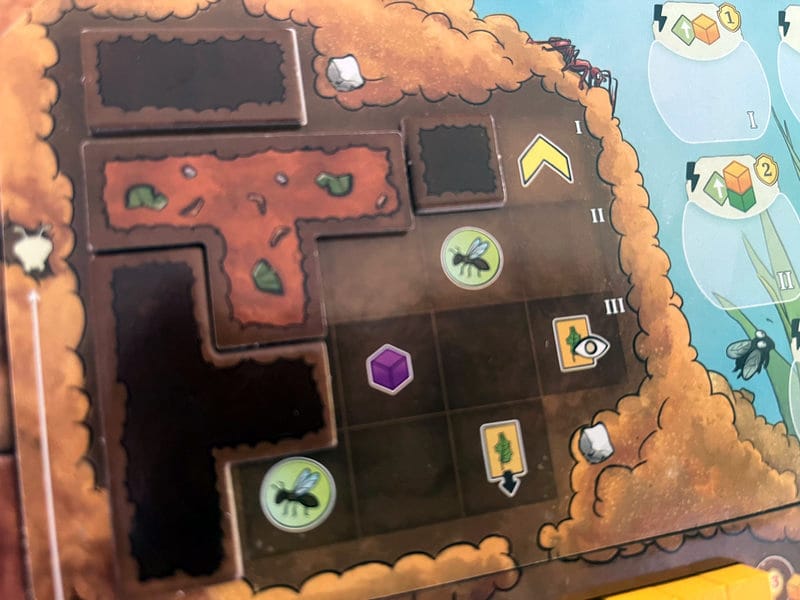 On peut aussi construire son moteur en menant des combats contre les espèces ennemies, emportant ainsi un jeton à placer sur son plateau, pour gagner quelques bonus, de la nourriture, de la production de fourmis et bien d’autres choses. À ce sujet chaque joueur peut avoir le même plateau ou des plateaux très asymétriques avec des récompenses très diverses, jusqu’à des points de victoire pour les plus grosses créatures.