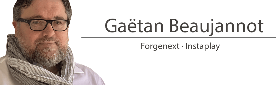 Bonjour Gaëtan et merci d’avoir accepté cette interview ! Peux-tu nous parler de tes activités actuelles, Forgenext et Instaplay ? En quoi consistent-elles ? Comment se recoupent-elles peut-être ?