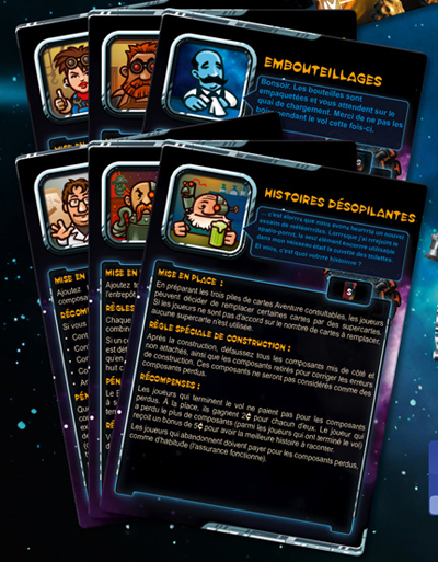 Galaxy Trucker : Mission est l’adaptation en jeu de plateau du mode campagne de la version en ligne et devinez-quoi, la boîte française arrive enfin dans nos contrées ! Voilà qui ravira les amateurs de transport de l’espace ! Et oui, cette extension était sortie en anglais et allemand à Essen 2015, autant dire que les français n’y croyaient plus beaucoup…