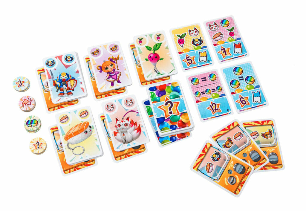 Revenons à notre jeu Bankiiiz, Gasha est un jeu compétitif de collection accessible dès 7 ans. En deux mots, nous allons collectionner des Gasha en espérant avoir les bons pour les échanger contre des cartes et gagner des bonus.