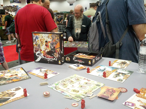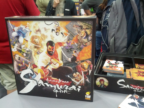>> Voilà déjà, un premier retour à vif avec le décalage horaire, sachez que Fendoel a aussi craqué sur le Sheriff de Nothingham (il s’en est même pris une petite boite), a vu Mister Bauza (un peu jetlagé peut-être ?) et son petit Samurai Spirit, il a vu le deck building de Shadow Run « il y avait des tas de boites mais personne pour en parler », et puis il a croisé de drôles de filles avec des proéminences mammaires dont il m’a longuement parlé…