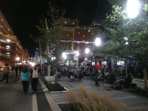 Notre reporter connaissait Essen mais découvrait la GenCon. L’impression qui semble le marquer le plus, c’est le fait qu’à Indianapolis, c’est toute la ville qui aime les geeks. Les habitants vous demandent d’où vous venez, est-ce que vous allez à la GenCon, à quoi vous allez jouer. Et oui, ça fait un an que toute la ville se prépare pour l’événement, et ça fait presque 50 ans qu’ils voient le salon gagner en ampleur. Aujourd’hui, c’est carrément la rue devant le temple qui va être envahie pour fêter l’arrivée de Donjon et Dragons 5e édition. « Les jeux et l’esprit qui l’accompagne envahit la ville » nous dit Fendoel, « c’est vraiment beaucoup plus chaleureux qu’à Essen. On mange mal, mais les gens sont très gentils, très ouverts ».