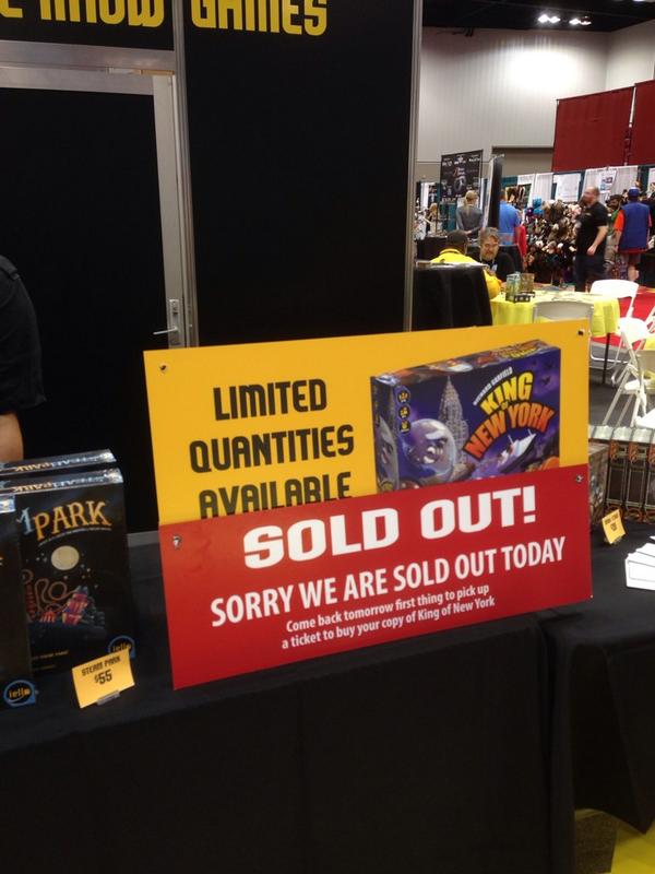 King of New York : « vrai renouvellement du jeu. Le 1er ayant été un gros carton ici, nul doute que Garfield voulait marquer le coup et revenir avec un nouveau titre encore plus gamer. » King Of New York fait un peu le buzz malgré lui sur le salon. Des palettes sont restées bloquées à la douane – du coup, ils peuvent vendre 50 boites par jour. Elles partent en 18 minutes. Je vous laisse imaginer le rush. Le 1er jour, le stand était sold out avant même l’ouverture des portes…
