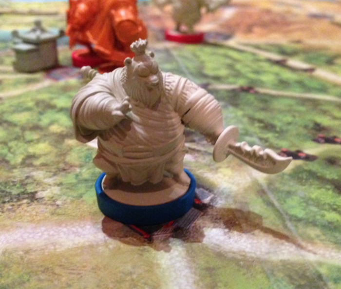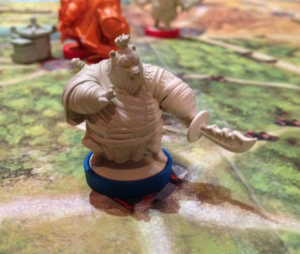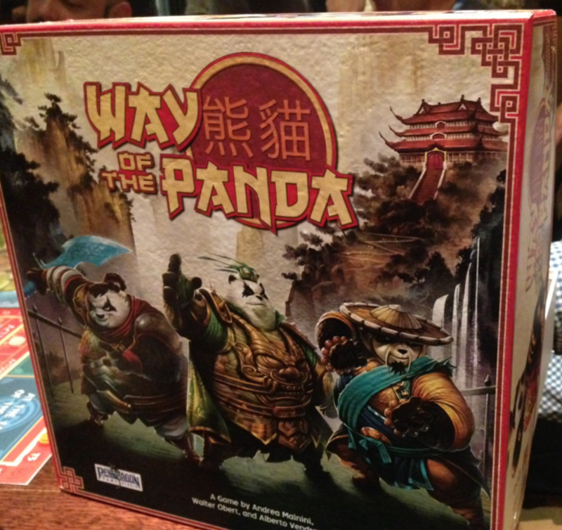 Ils ont également montré leur gros panda avec Way of the Panda, un jeu signé Andrea Mainini, Walter Obert et Alberto Vendramini qui s’avère un jeu de pose d’ouvriers avec des figurines où il vous sera possible de contrôler trois héros différents (moine, commerçant, guerrier). La pose d’ouvriers vous permet ici de choisir votre action sur le plateau (déplacement, construction, entrainement au combat, ou gagner de la sagesse pour marquer des points de victoire), mais il vous faudra aussi payer des points d’action afin de pouvoir réaliser tout cela, et si vous choisissez les actions les plus fortes, vous payerez le prix fort… et ne pourrez pas revenir en arrière sur le choix des actions, un peu comme dans Egizia.