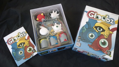 Hier, j’ai fais « Gloobz » entre amis. Et ça a marché du tonnerre. Que dire de ce nouveau jeu d’acuité visuel ? Déjà, ce qui saute à l’oeil, c’est que l’édition est hyper léchée et les illustrations (que l’on doit à Maxim Cyr) ont un fort capital sympathie comme disent les gens qui font des réunions. Non et puis c’est quoi ces bêbêtes ? Vi ça intrigue hein ? Et là, on soulève le couvercle et on tombe sur 56 cartes Gloobz, 3 figurines Pot de Peinture, 4 figurines Gloobz, 6 disques de score, 1 règle du jeu, bon, hey, la boite est pleine, n’en jetez pluuus !