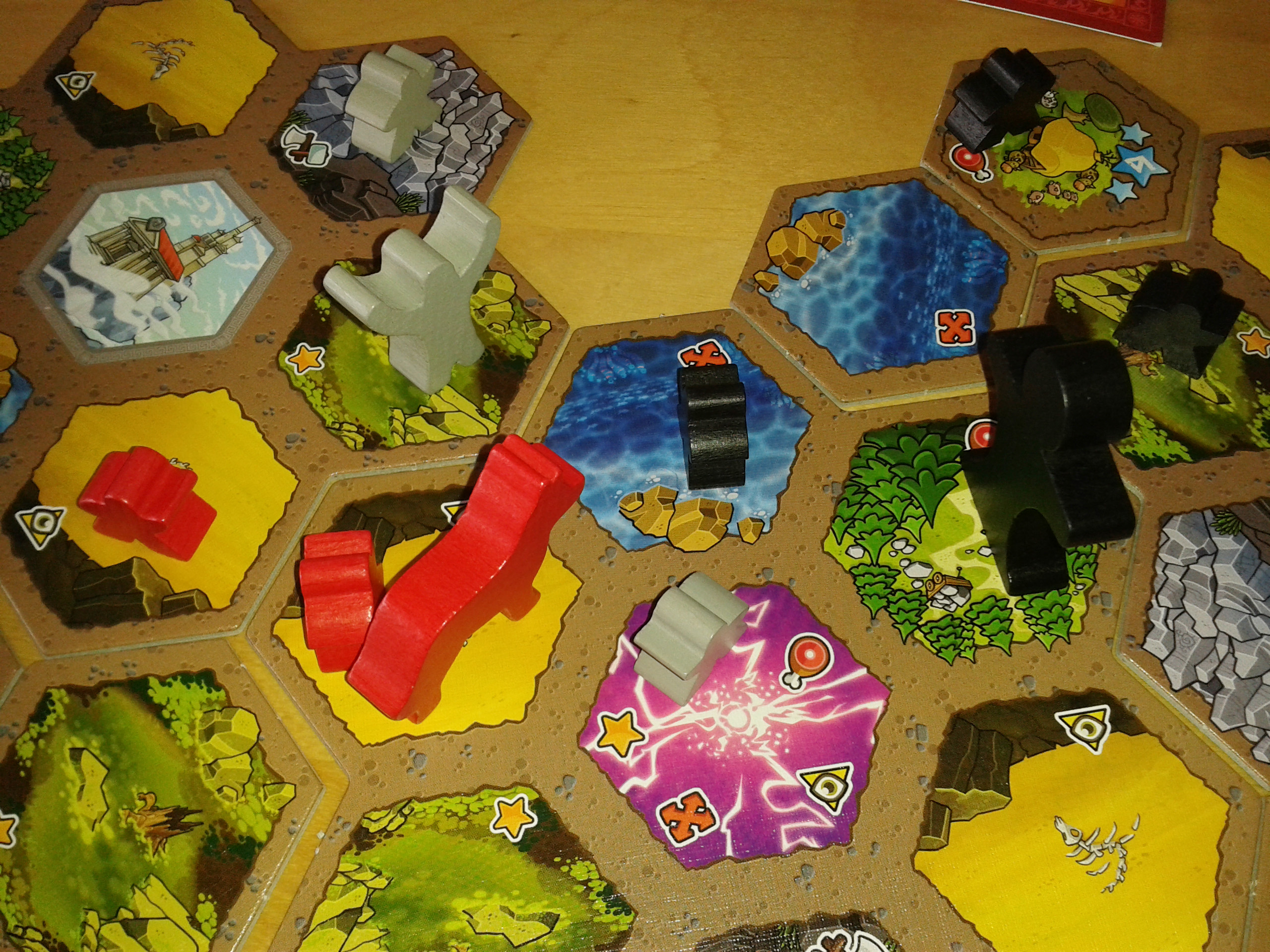 Les joueurs peuvent utiliser leurs pouvoir pour ajouter des tuiles au plateau en cours de partie. C’est l’un des aspects les plus intéressants du jeu, là où il faut choisir entre ses besoins immédiats, le score de fin de partie et l’envie de contrecarrer ses rivaux.