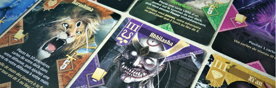 C’est ici que je reviens sur les clans : avec la pratique, on comprend mieux chacun d’eux, et il y en a pour tous les goûts. Vous aimez jouer agressif, détruire les cartes des joueurs, vous devriez vous sentir dans votre élément avec Goan Sul. Avec Tomorrow ou Phoenix, vous pourrez plus jouer sur les combos ; Justice ou Abhilasha (mes préférés) sont plus dans le contrôle ; avec Phoenix ou Narashima, vous aurez plus de moyens d’avoir des cartes ; Xi’an ou Galmi sont plus dans le soutien. À nous de construire nos synergies tout en tenant compte des clans pris par l’adversaire, sans oublier les règles qui vont se rajouter en fonction des deux clans restants. Certains peuvent être une vraie épine dans le pied.