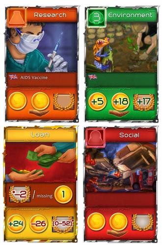 Il est important de développer dans les 4 catégories de projets pour gagner le plus de points possible – de plus, les joueurs avec la meilleure réputation dans chaque catégorie reçoivent des points de victoire supplémentaires. Lancez des campagnes de relations publiques, vous pourrez ainsi secrètement décider dans quel domaine vous voulez améliorer votre image.