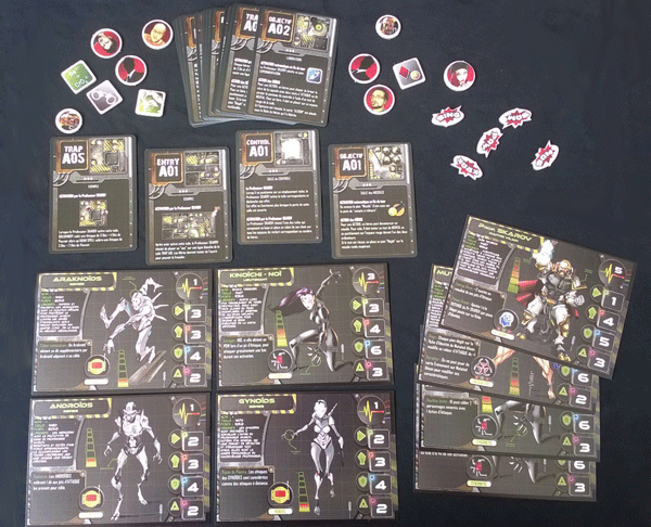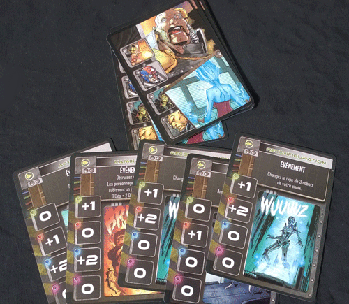 Bref, le mécanisme des pouvoirs est plutôt riche et original, et permet de multiples possibilités – les personnages combinés entre eux auront pas mal de stratégies possibles. On peut ouvrir des portes, désamorcer des pièges, taper, courir… Dommage, les cartes s’abîment vite, une protection sleeve ne sera pas de trop.