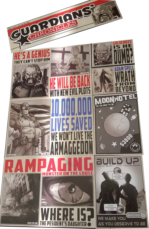 La plus belle idée ludico-visuelle du jeu : le système de majorité des missions, illustré par la composition progressive de la une du journal local. En clair, lorsque les gentils remplissent une mission avec dignité, ils auront droit à un bel article à la une (de couleur bleue). Si c’est les vilains qui assurent, c’est eux qui auront droit à un encart (couleur rouge). Si un héros tombe au combat, paf, les journalistes afficheront sans scrupule un article le discréditant. Et oui, vos faits et gestes, vos réussites et vos échecs sont scrutés par les paparazzi.